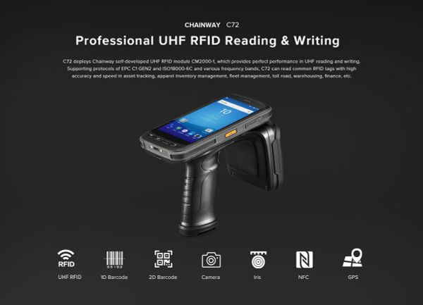 Đầu đọc RFID UHF Chainway C72 là một thiết bị hiện đại và đa năng, được ứng dụng rộng rãi, thiết kế đặc biệt để cải thiện hiệu suất thu thập dữ liệu và quản lý thông tin trong các môi trường công nghiệp và thương mại, đặc biệt là trong quản lý tài sản, bán lẻ, kho bãi, tồn kho hàng may mặc, phí đường cao tốc, quản lý đội xe, tài chính, …quản lý chuỗi cung ứng và các ứng dụng tự động hóa công nghiệp khác.