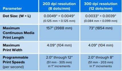 Dưới đây là các thông số kỹ thuật Đầu in Zebra ZT231 300 dpi gồm: