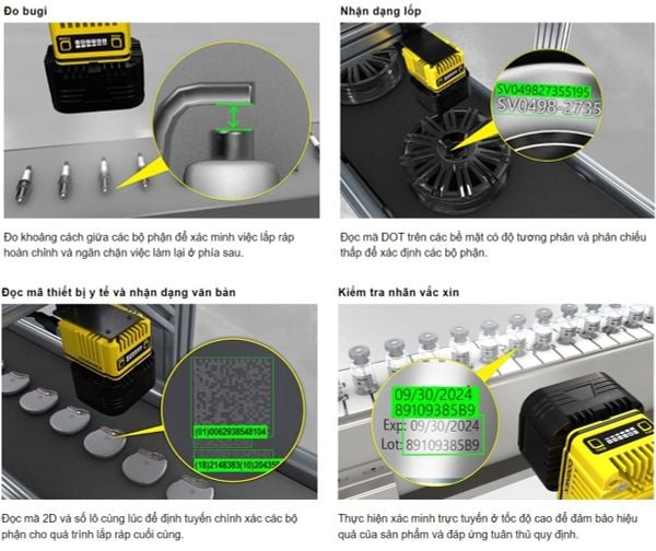 - Tự động hóa công nghiệp: kiểm tra, đo lường và giám sát sản phẩm, xử lý hình ảnh và nhận dạng sản phẩm.
