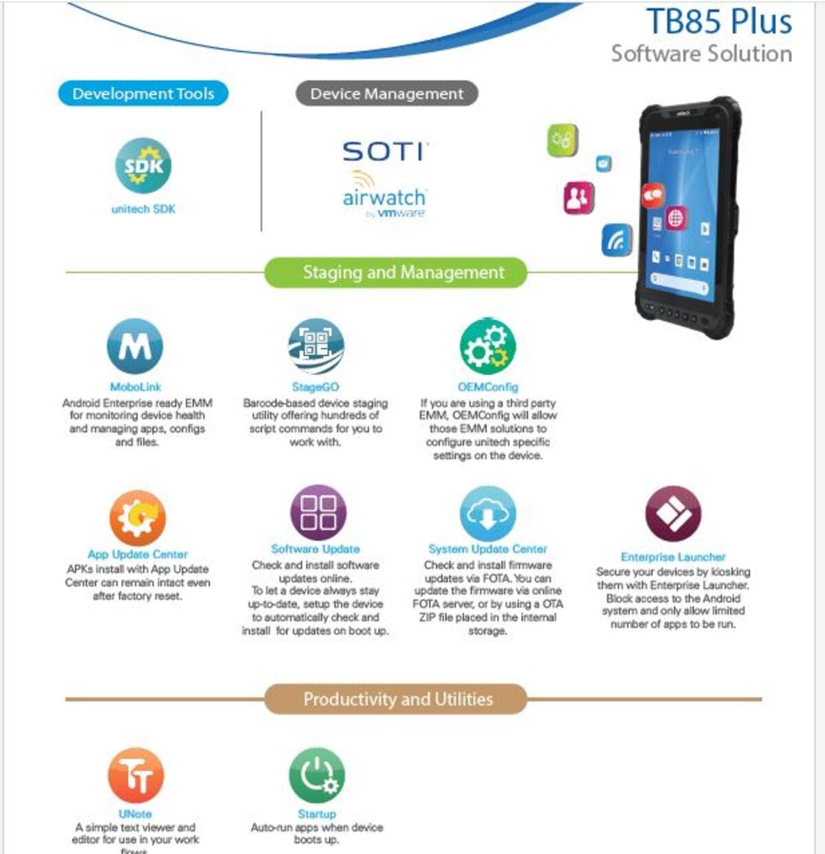 Xem thêm Datassheet, Hướng dẫn sử dụng Unitech TB85 Plus: Tại đây.
