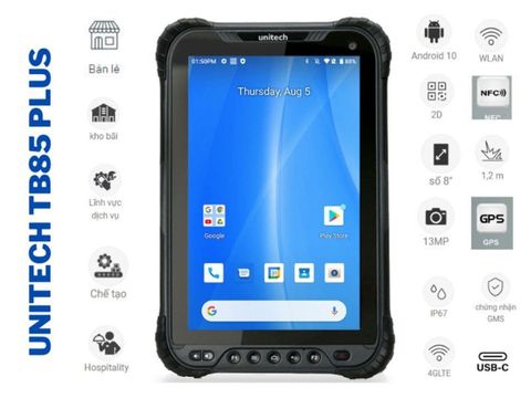 Thiết bị mã vạch Unitech TB85 Plus là thiết bị đa năng, đặc biệt dành cho các chuyên gia trong các ngành công nghiệp khác nhau như bánh lẻ, kho, nhà máy sản xuất, hậu cần và lĩnh vực vận tải và nhiều ngành khác.